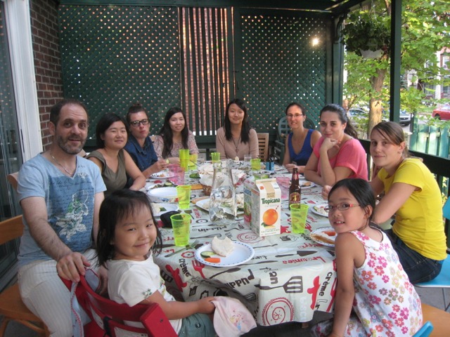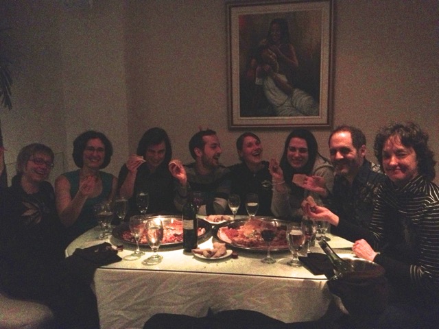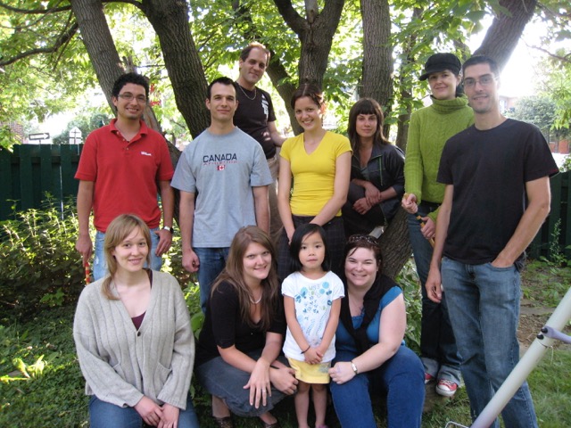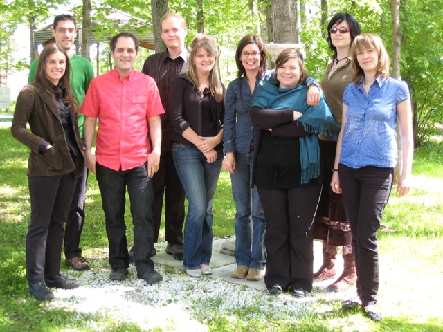 (à table, de gauche à droite: Chanel Bélanger, Aude Villemain, Florine Cermakian, Erika Belanger-Nelson; debout, de gauche à droite: Nicolas Cermakian, David Duguay, Jean-François Poirier-Héon, Niki Mainguy (fils de Val), Valérie Mongrain, Erin Fortier, Kirsten Humbert)